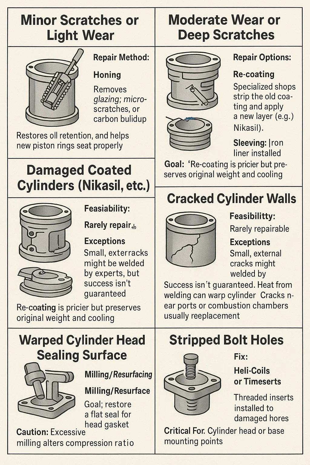 Teljesen, motorkerékpár hengerei gyakran javítható a sérülés típusától és súlyosságától függően. Íme egy gyakorlati lebontás: