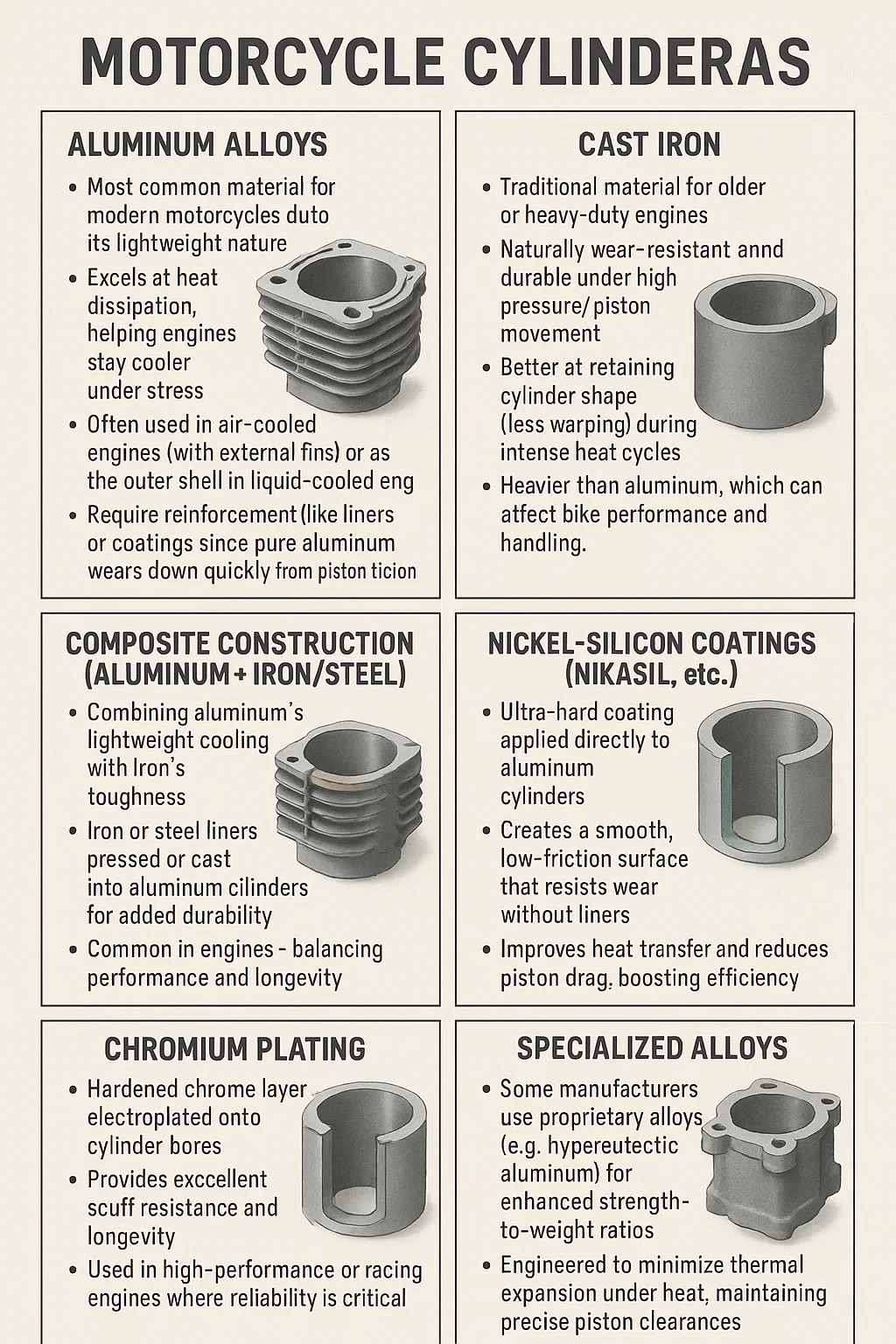Motorkerékpár hengerek elsősorban szilárdság, hőtűrés és tartósság szempontjából kiválasztott fémekből készülnek. Itt található a gyakori anyagok és jellemzőik részletes lebontása: