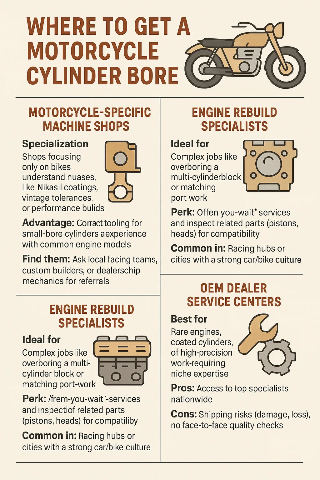 Itt található a motorkerékpár henger unatkozva, a megfelelő szolgáltatás kiválasztásának fő szempontjaival: